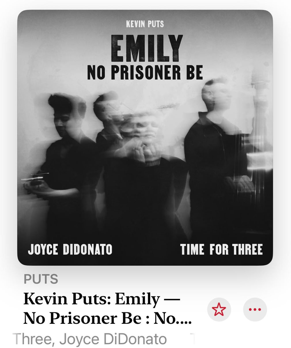 J’ai trouvé sur “Apple music classical” un CD qui pourrait intéresser Hélène (qui vient de m’envoyer une lettre pleine d’humour, comme toujours…) car il s’agit de poèmes d’Emily Dickinson mis en musique par un compositeur que je connais pas mais chantés par Joyce DiDonato que je connais bien, par contre…