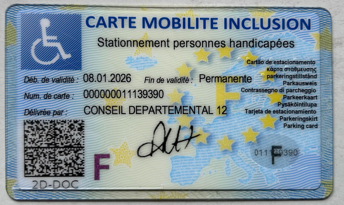 J’ai reçu, finalement assez vite, la carte à apposer sur mon pare-brise pour pouvoir garer la voiture sur les places “réservées”, contre lesquelles je ronchonnais souvent, autrefois…