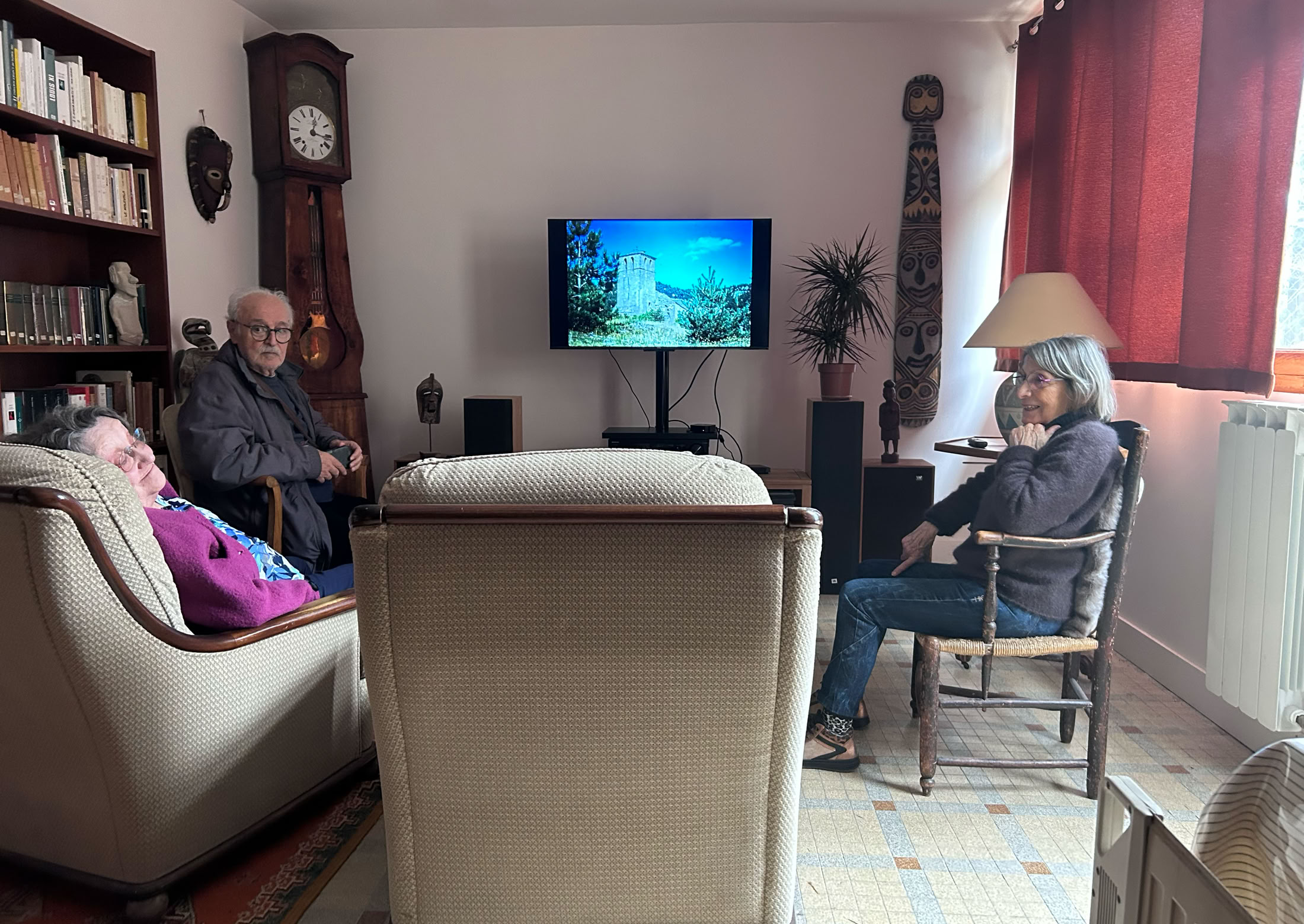 Mireille les a ramenés ici, et je leur ai fait une séance de photos sur grand écran, avec un certain nombre de photos de la famille Gély; celles qu’elle m’avait données, et dont j’ai numérisé l’essentiel. Je les lui avait données sur une “clé USB” mais elle n’a jamais su les visionner sur son PC: trop compliqué! Je lui ai conseillé d’acheter un iPad… qui serait bien mieux pour elle, et sur lequel je pourrais facilement lui mettre toutes ces photos… et lui montrer comment les voir.